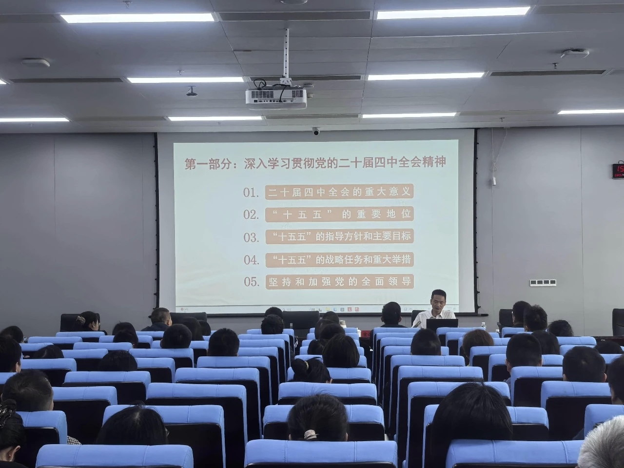 按照省委统一部署和省发展改革委贯彻学习党的二十届四中全会精神工作方案安排,11月18日-20日,省发展改革委开展系列宣讲报告会,向全委干部宣讲党的二十届四中全会精神,推动学习贯彻工作往深里走、往实里走、往心里走,让每一位干部在思想淬炼中明方向、在实践指引中强本领、在使命感召中勇担当。